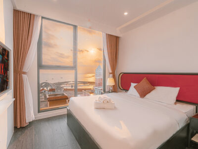 • Ban công riêng rộng rãi: View trực diện Cầu Hôn (Kiss Bridge) và bờ biển – lý tưởng để ngắm bình minh, hoàng hôn hoặc đơn giản là thư giãn mỗi ngày